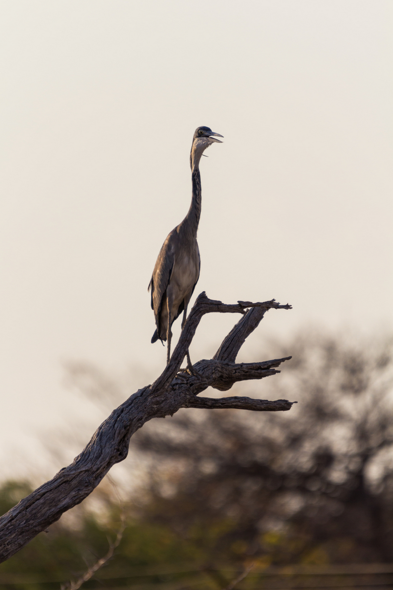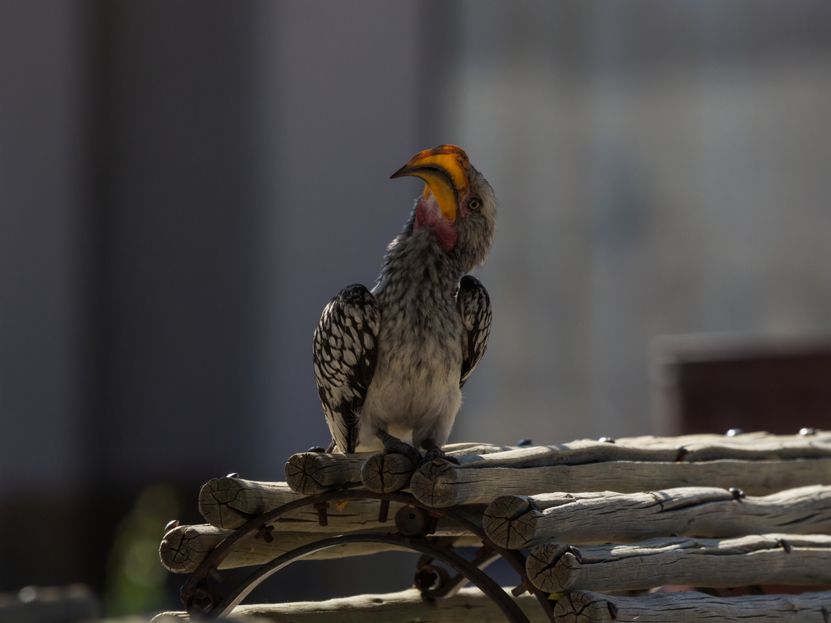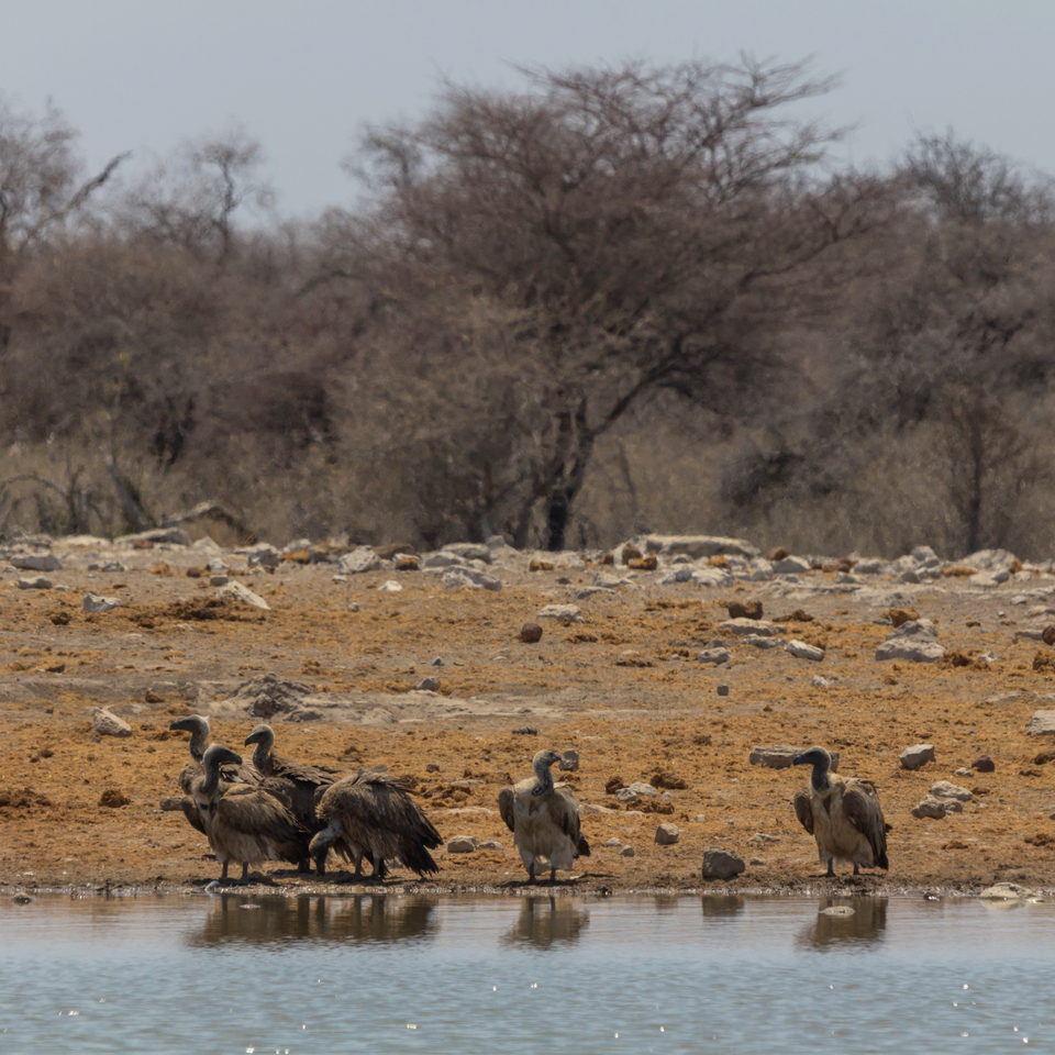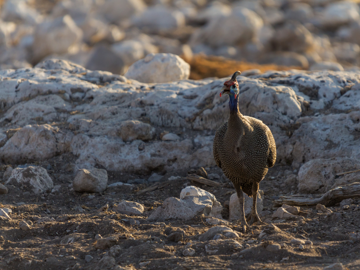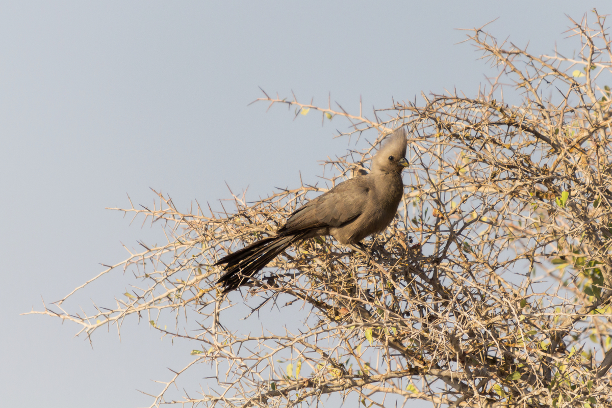Graulärmvogel am Wasserloch Klein-Namutoni