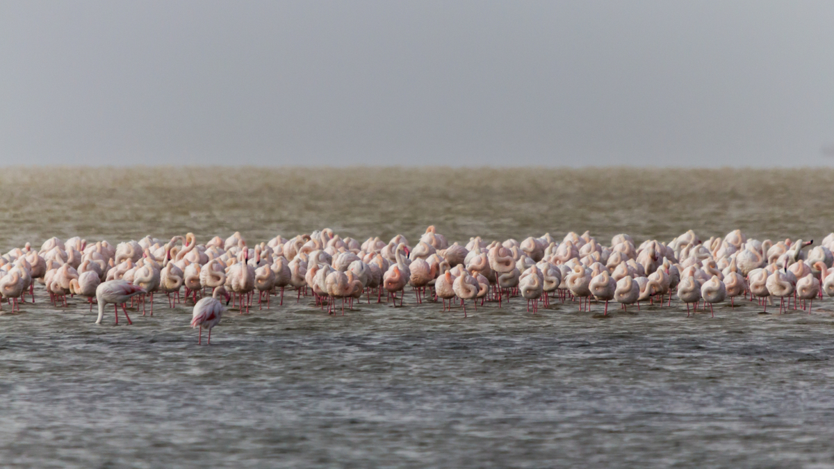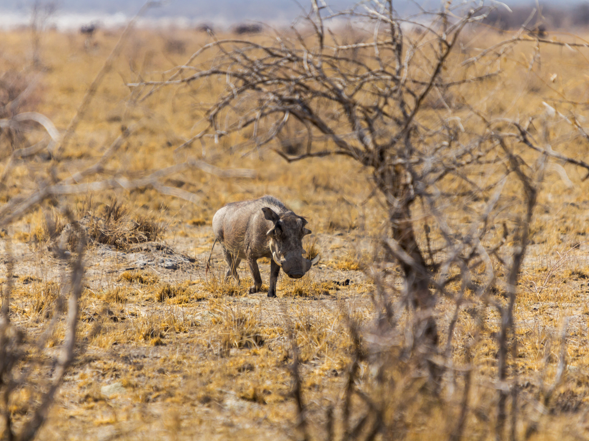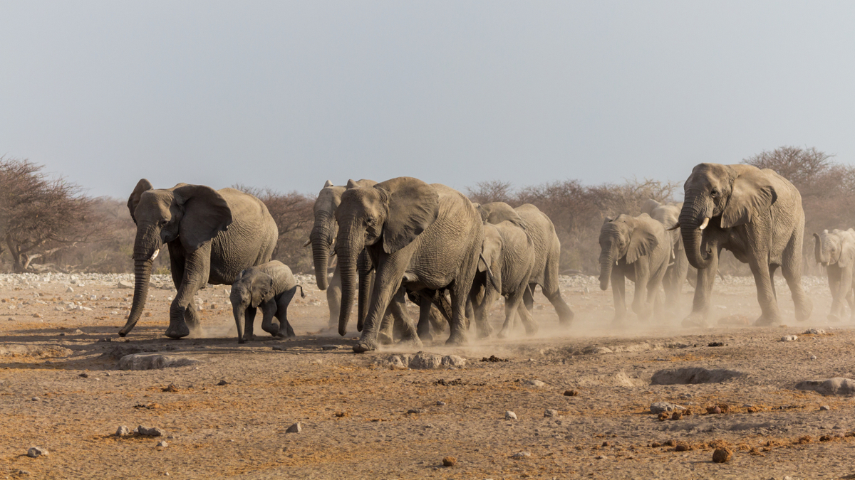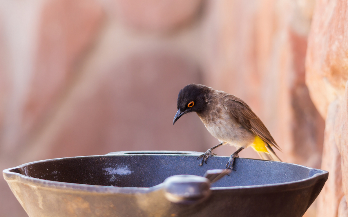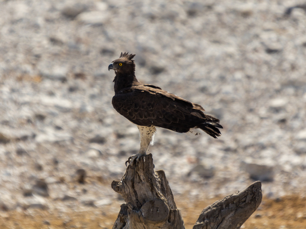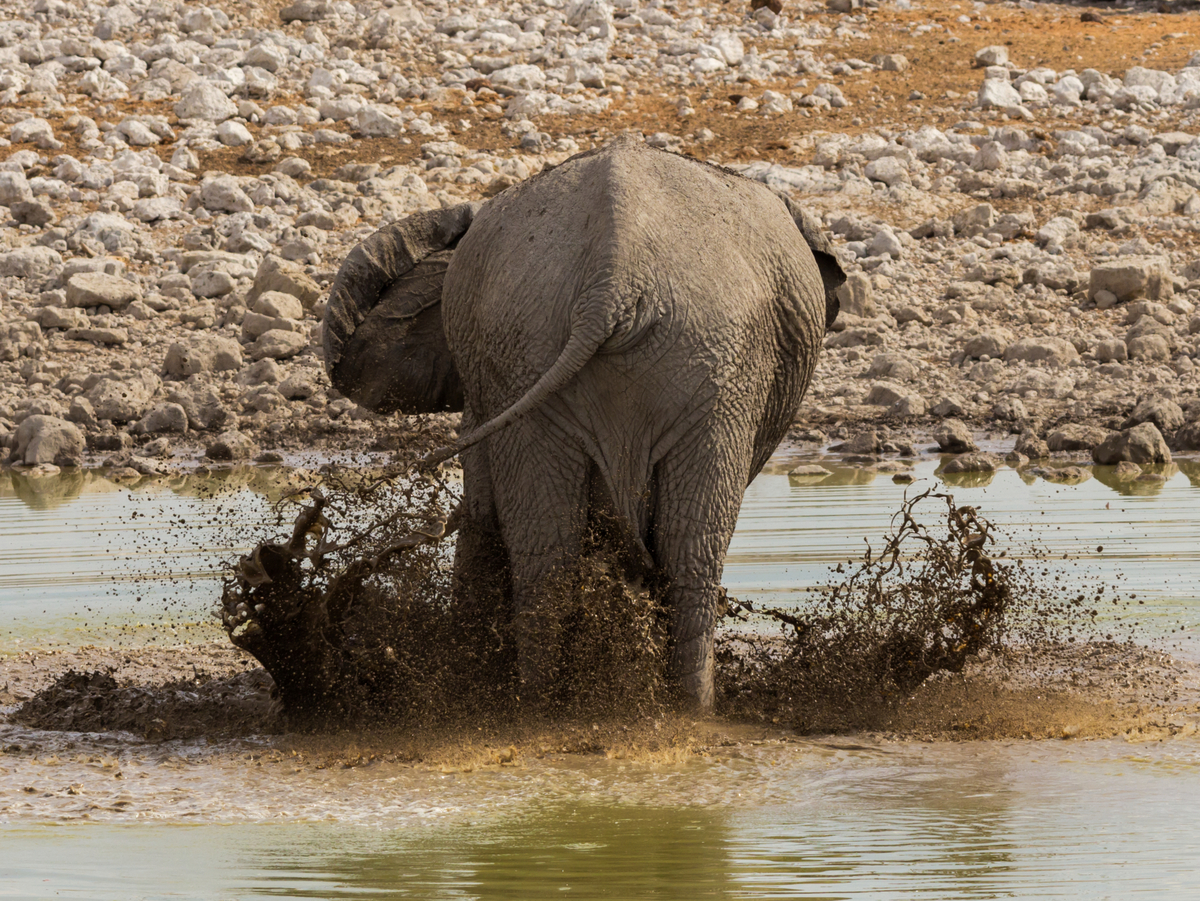 Graulärmvogel am Wasserloch Klein-Namutoni
