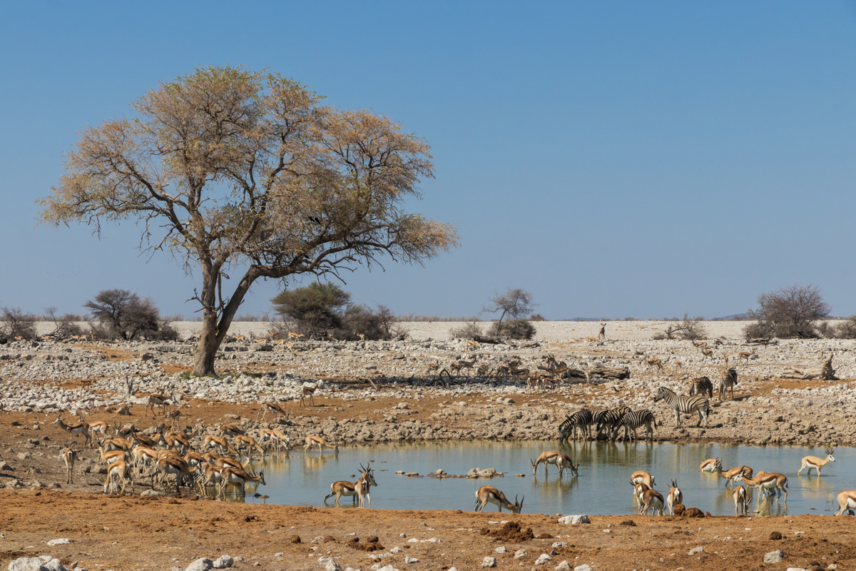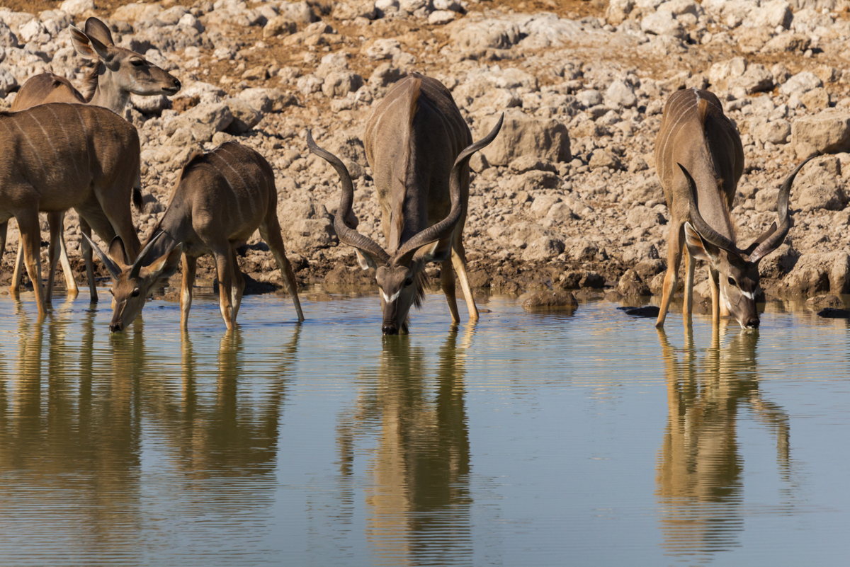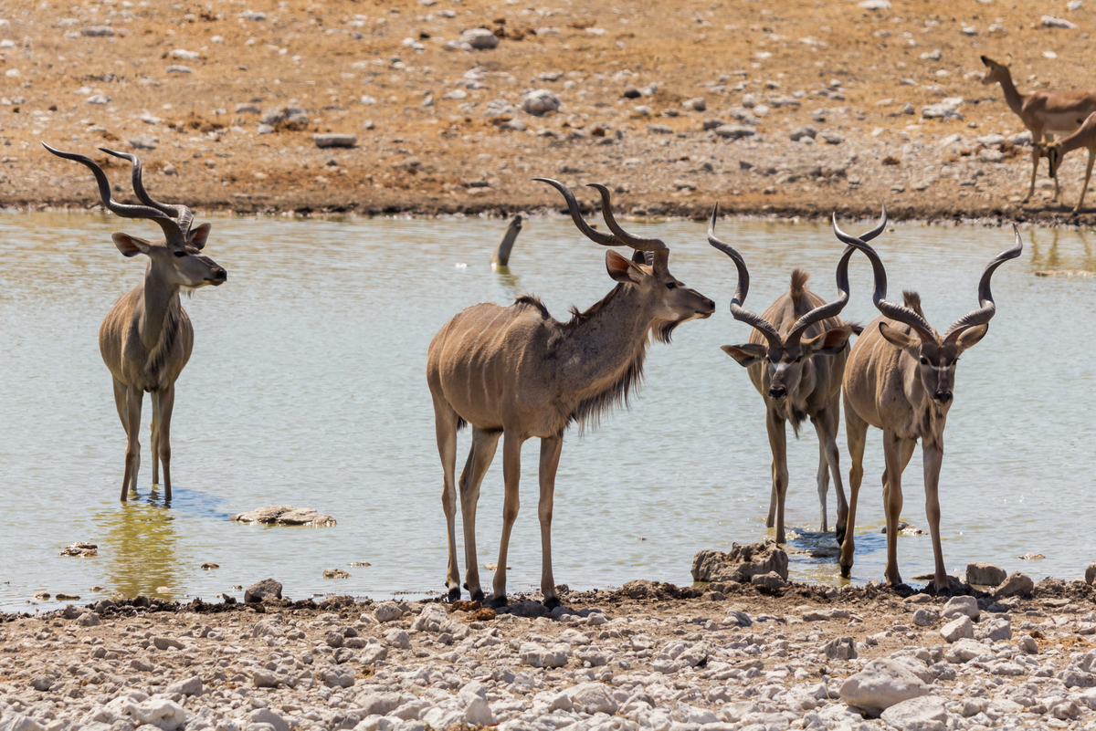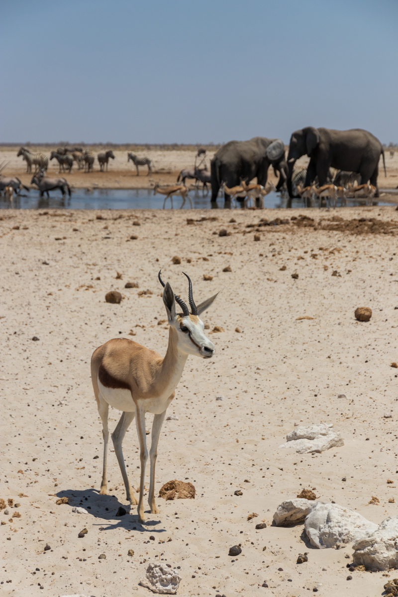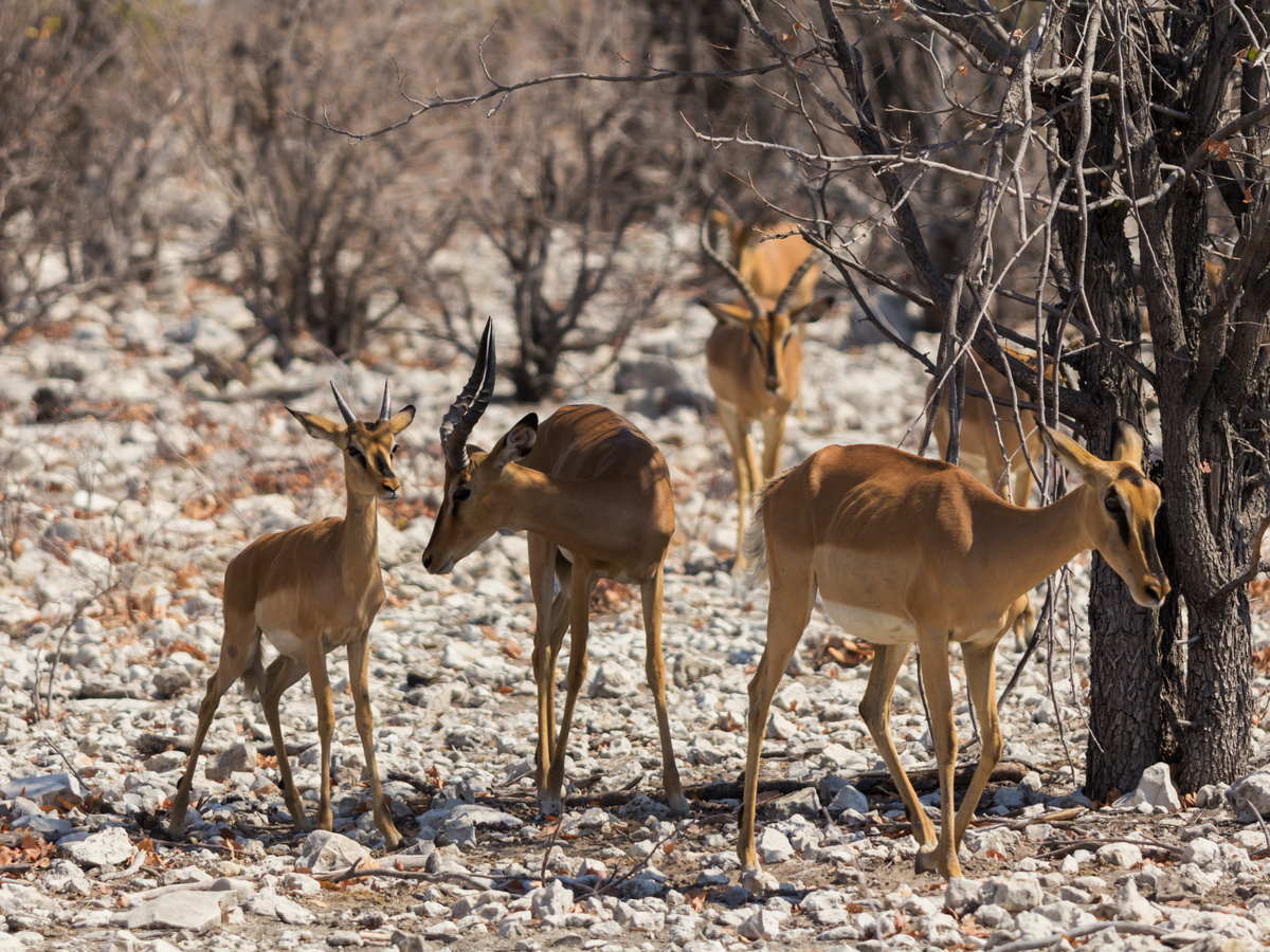 Schwarznasenimpalas am Wasserloch Olifantsbad