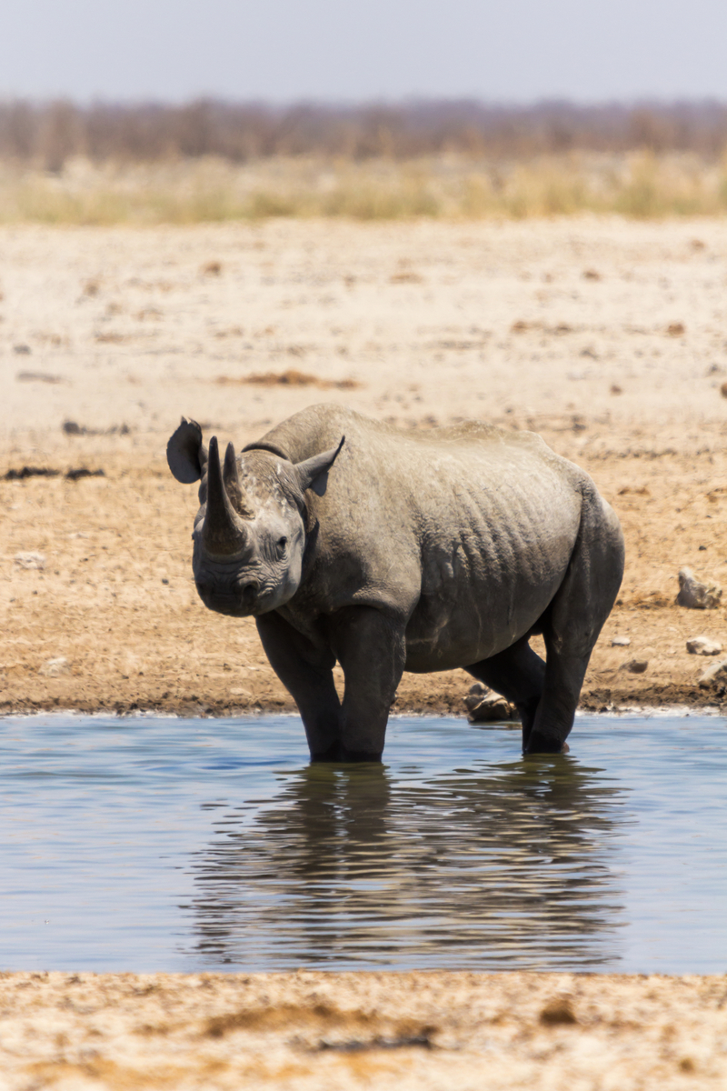 Spitzmaulnashorn am Wasserloch Ozonjuitji m'Bari