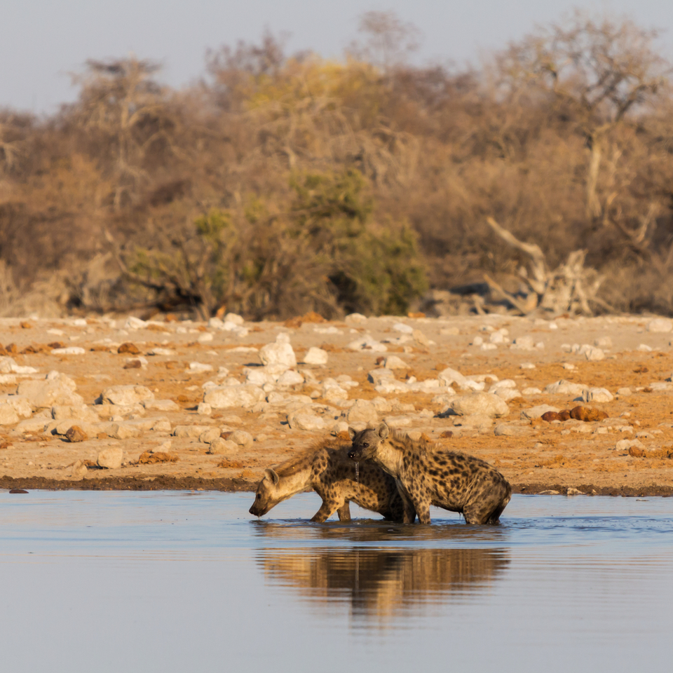 Tüpfelhyänen am Wasserloch Klein-Namutoni