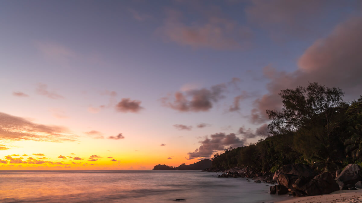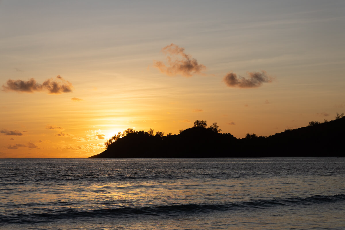 Sonnenuntergang an der Anse Takamaka