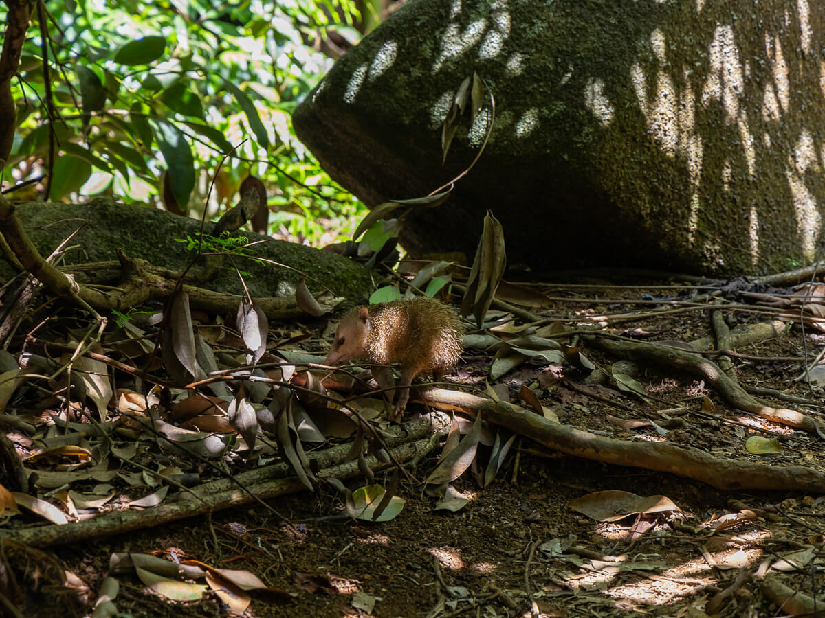 Ein Tanrek auf dem Anse Capucins Trail