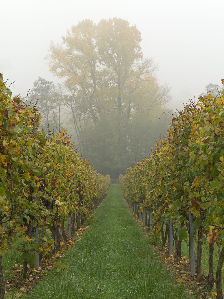 Weinberge im Nebel