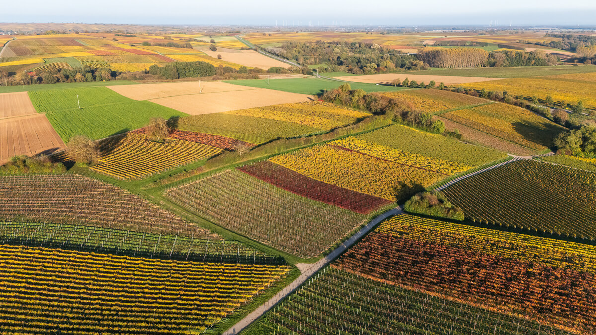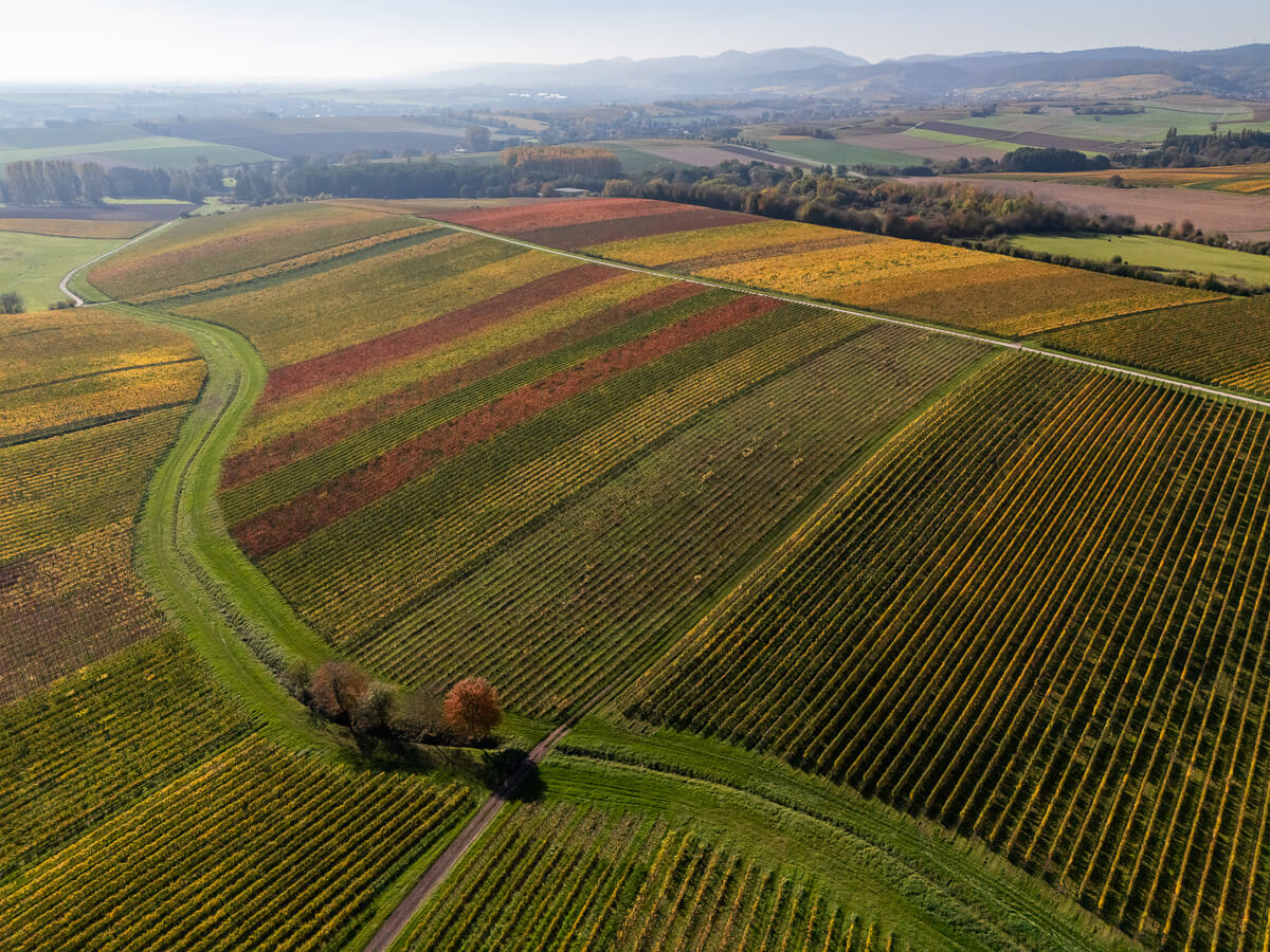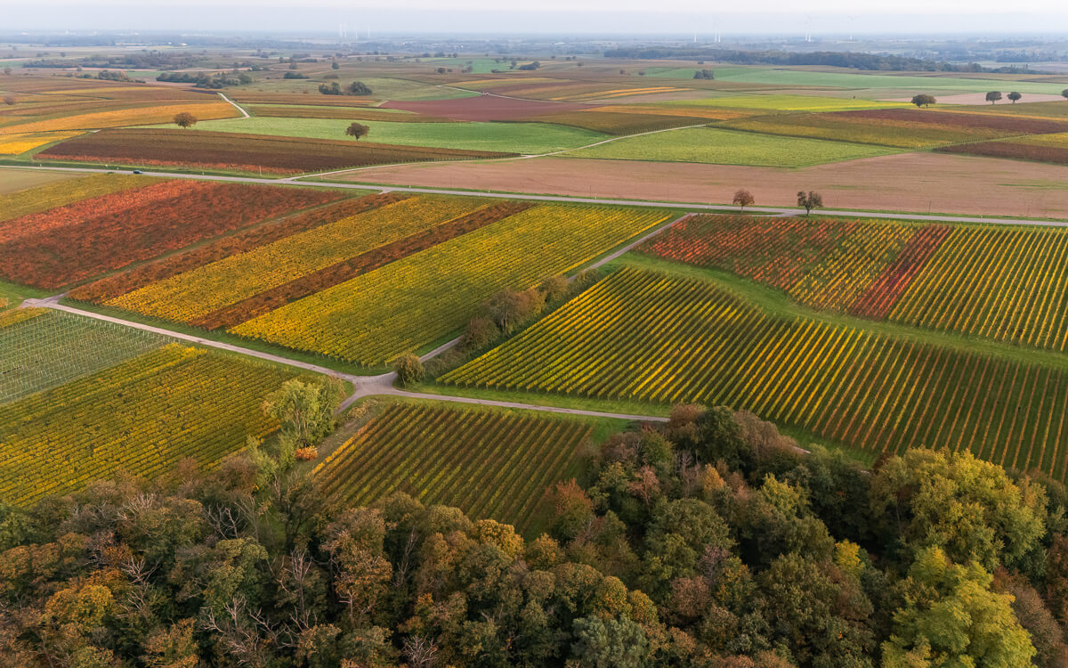Flug über die herbstlichen Weinberge