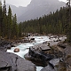 ![]() ![]() ![]() Auf der Fahrt auf dem Icefields Parkway nach Norden reiht sich natürlich ein Highlight ans andere, und man kann eigentlich auf jedem Parkplatz anhalten um Fotos zu schießen, es gibt jedoch einige Viewpoints, die man nicht auslassen sollte. Zuallererst natürlich das Postkartenmotiv des Peyto Lake am Bow Summit, des mit 2088m höchsten Straßen-Passes im Park. Ein kurzer recht steiler Weg führt zum Aussichtspunkt, von dem aus man einen sagenhaften Blick hat: vom den See speisenden Gletscher auf der linken Seite über den See selbst mit den imposanten Bergen im Hintergrund bis weit hinein ins Tal des Bow River, wo sich in der Ferne der Icefields Parkway verliert. Außerdem sehr schön ist der Crowfoot Glacier, der natürlich aufgrund seiner an einen Krähenfuß erinnernden Form diesen Namen trägt. Kurz darauf folgt der Bow Lake, der in extrem grellem Türkis leuchtet und mit der roten Num Ti Jah Lodge im Hintergrund ein schönes Motiv abgibt. Super geeignet für ein Picknick ist der Rest Stop am See mit Tischen direkt am Wasser. Des weiteren lohnt es sich, dem Mistaya Canyon, der auf einem kurzen Trail zu erreichen ist, einen Besuch abzustatten. Er ist zwar nicht ganz so spektakulär wie einige der anderen Canyons und Wasserfälle entlang des Icefields Parkway im Jasper N.P., aber trotzdem auf jeden Fall einen Stop wert. Wenn man auf Wasserfälle steht, sollte man sich die Panther Falls nicht entgehen lassen, die aber nicht so einfach zu finden sind. Am Viewpoint für die Bridal Veil Falls bei Big Bend weist ein kleines Schild zu einem unscheinbaren Trail nach rechts den Hang hinab und zu einem Aussichtspunkt unterhalb des Parkplatzes. Nach kurzer Zeit steht man hier unvermittelt vor einem gigantischen Wasserfall, von dem man am Parkplatz nicht das geringste mitbekommt. Aufgrund des steilen und rutschigen Terrains sollte man hier jedoch sehr vorsichtig sein! Eine schöne Kurzwanderung führt hinauf auf die Parker Ridge. Schon beim steilen Aufstieg hat man ständig tolle Ausblicke über den Highway und die umliegende Berglandschaft, und ist man dann oben angelangt, schaut man auf der anderen Seite hinunter in das riesige Tal des Saskatchewan Glacier, der inzwischen allerdings ziemlich weit weg ist. Etwa auf halber Strecke des Icefields Parkway, bei Saskatchewan Crossing, führt der David Thompson Highway nach Osten. Wer genügend Zeit hat oder vielleicht eine Übernachtungsmöglichkeit sucht, sollte auf jeden Fall einen Abstecher machen, denn die Landschaft hier entlang des Saskatchewan River steht der am Icefields Parkway kaum nach. Zudem wird man auf dieser Strecke nicht annähernd so vielen Autos begegnen wie auf jenem, und man kann die Landschaft in viel größerer Ruhe genießen. Alle paar Kilometer gibt es günstige Campingplätze, die zwar meist der einfacheren Kategorie angehören, jedoch wunderschön gelegen sind. Nach etwa 20km gelangt man ins Gebiet der Kootenay Plains Natural Preserve, wo es schöne Wanderwege z.B. entlang des Saskatchewan River gibt. Nach unserer Übernachtung auf dem 2 O´Clock Campground machten wir einen kurzen morgendlichen Spaziergang in den Kootenay Plains bis zu einer Hängebrücke über den Saskatchewan River, wobei wir eigentlich gehofft hatten, zu so früher Stunde (etwa um 6:30) einige Tiere beobachten zu können, doch genau wie an den anderen Tagen meistens auch bekamen wir nicht eines zu Gesicht. Dafür erlebten wir einen tollen Sonnenaufgang, der die umliegenden Berge langsam von oben herab golden einfärbte. |
