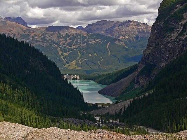 Aussicht auf den Lake Louise am Plain Of Six Glaciers Trail