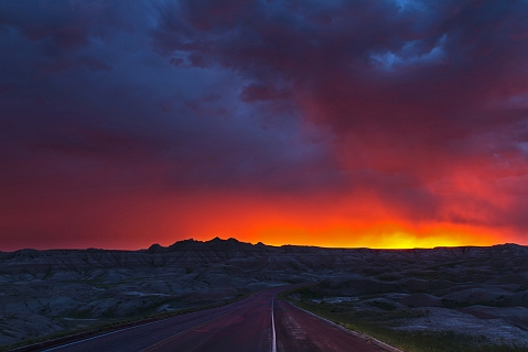 Badlands Scenic Drive bei Sonnenuntergang