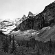 Lake Louise, wo wir eigentlich die meisten Wanderungen hatten machen wollen. Besonders auf das Larch Valley hatte ich mich gefreut, und von unten aus dem Tal konnte man schon sehen,