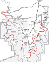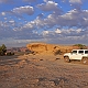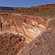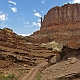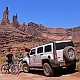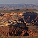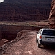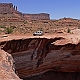 ![]() ![]() ![]() ![]() Endlich haben wir uns einen großen Traum erfüllt: einmal die komplette White Rim Road zu fahren! Bereits 2005 hatten wir ein kurzes Teilstück von der Potash Road bis zum Musselman Arch gefahren und beschlossen, daß wir irgendwann noch die ganze Strecke fahren müssten. Bei der Planung für die 2007er Tour hatten wir dann unabhängig voneinander dieselbe Idee: mein Vater würde mit dem Auto fahren, und ich mit dem Mountain Bike! Die Strecke von 160km ist mit dem Bike an einem Tag kaum zu schaffen, höchstens vielleicht im Frühjahr oder Herbst, wenn es nicht so heiß ist, mit einem Begleitfahrzeug sind zwei bis drei Tage jedoch ideal. Zum Übernachten suchten wir uns den Murphy Hogback Campground aus, da er ziemlich genau in der Mitte liegt. Im Normalfall sind die Campingplätze extrem begehrt und man muß bereits Monate im Voraus reservieren, was ich auch tat, in unserem Fall wäre das jedoch nicht nötig gewesen, denn im Sommer sind nur wenige Verrückte auf der WRR unterwegs :-) 1. TagWir begannen unsere Tour also früh morgens in Moab. Die Anfahrt über die Potash Road dauerte dann aber doch länger als gedacht, vor allem wegen einiger Fotostops :-) So war es dann bereits 9 Uhr, als wir an der Kreuzung mit der White Rim Road mein Fahrrad aus dem Auto holten. Inzwischen war es schon ziemlich warm, doch mit dem Fahrtwind war es recht angenehm zu fahren. Das erste Teilstück bis zum Musselman Arch war dann recht schnell geschafft, und natürlich musste hier das obligatorische Foto mit Bike auf dem Arch gemacht werden! Drüberfahren darf man allerdings nicht - auf die Idee käme ich aber auch gar nicht...Die Straßenverhältnisse in diesem Teil der Strecke sind relativ gut, wobei man aber meist mit dem Fahrrad schneller ist als mit dem Auto. Die Strecke ist im großen und ganzen recht eben. Man muß allerdings immer die Canyons umfahren, die sich in das Plateau eingeschnitten haben, und da die Gesteinsschichten schräg liegen, fährt man immer auf der einen Seite eines Canyons bergab und auf der anderen bergauf, doch das Gefälle ist nicht besonders groß. Es gibt einige etwas schwierigere Passagen, z.B. einen kleinen steilen Anstieg mit Sandlöchern und einigen Felsbrocken, doch der ist einfacher als er aussieht. An manchen Stellen führt die "Straße" direkt am Abgrund entlang, man fährt direkt auf der White Rim und manchmal sogar auf einem Überhang, doch das sieht man glücklicherweise erst hinterher - ist schon ein komisches Gefühl :-) Und die Landschaft ist einfach atemberaubend! Hinter jeder Biegung wieder ein neuer toller Ausblick, ob nach rechts hinauf zur Island In The Sky, wo man z.B. den Washer Woman Arch mal aus einer ganz anderen Perspektive sehen kann als sonst vom Mesa Arch aus (der übrigens auch ganz klein oben am Rand erkennbar ist), oder ob links hinunter in die verschiedenen Canyons, der Streckenverlauf ist einfach sensationell! So dauert das Ganze dann viel länger, als man eigentlich annimmt, denn durch die ständigen Fotostops kommt man kaum voran :-) ![]() Der nächste Höhepunkt auf der Strecke war das Monument Basin, auch bestens bekannt vom Grandview Overlook, von wo aus man direkt auf diesen Abschnitt der White Rim hinuntersieht. Von unten ist das Ganze nochmal beeindruckender, denn man erkennt hier erst richtig die immense Größe der Felssäulen, die hier aus dem Canyon aufragen. Die "Monumente" sehen schon extrem spektakulär aus, mit ihrem dunkelroten Gestein und den riesigen weißen Kappen aus dem hellen Sandstein, der die White Rim bildet. Das ist allerdings vorläufig der letzte Höhepunkt, denn der weitere Streckenverlauf bis zum White Crack ist recht öde und verläuft auf einer weiten buschbewachsenen Ebene weit weg vom White Rim ohne irgendwelche spektakulären Ausblicke. Zudem kam jetzt am Nachmittag Gegenwind auf, und die Piste wurde recht sandig, was das Vorwärtskommen mit dem Rad ziemlich erschwerte und die Sache doch ziemlich anstrengend machte. Gegen 17 Uhr erreichten wir dann den Abzweig zum White Crack, dem südlichsten Punkt der White Rim. Natürlich wollten wir die kurze Strecke dorthin auch noch fahren, um die Aussicht von dort zu geniessen, und beschlossen, daß wir dort dann das Fahrrad einladen und die restliche Strecke zum Campingplatz zusammen mit dem Auto zurücklegen würden. Vom White Crack Campground aus gibt es einen kurzen Trail bis zur Südspitze des Plateaus, wo man dann über die namensgebenden Cracks im Gestein der White Rim steigen und auf der Spitze einiger Felssäulen herumlaufen kann - ein ganz besonderer Nervenkitzel! Und die Aussicht ist natürlich wieder einsame Spitze, wenn der Blick über unzählige Canyons bis hinüber zu den Needles schweift... Nach 52 mit dem Rad gefahrenen Kilometern stieg ich also ins Auto (nach 9 Stunden, mit allerdings nur knapp 4 Stunden reiner Fahrzeit...), und wir machten uns an das letzte Teilstück. Hier gibt es wieder einige schöne Aussichtspunkte, und je näher man dem Murphy Hogback kommt, desto anspruchsvoller wird die Strecke. Der Hogback ist eine ca. 300 Meter hohe Erhebung, über die die Straße hinwegführt, und obenauf liegt der Campingplatz, unser Ziel für diesen Tag. Noch vor Erreichen des eigentlichen Anstiegs hinauf auf den Hogback kommt man an die unseres Erachtens schwierigste Stelle der gesamten WRR, ein kurzer extrem steiler Anstieg. Der Untergrund ist hier sehr locker, mit großen losen Steinen und sandigen Kuhlen, und zudem muß man oben auch noch eine scharfe Linkskurve fahren und sieht erstmal gar nicht, wie es weitergeht. Nach kurzer Prüfung zu Fuß packten wir´s an und gaben Vollgas, und unser Hummer ließ uns auch hier nicht im Stich :-) Ein paarmal drehte eines der Räder kurz durch, eine Staubwolke stieg auf und ein paar Steine flogen, doch dann waren wir oben. Der restliche Aufstieg ist dann zwar steil und schmal, doch gut zu fahren, und so erreichten wir schließlich gegen 20 Uhr den Campingplatz. Natürlich waren wir die ei
