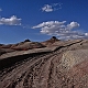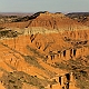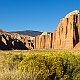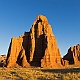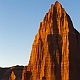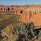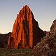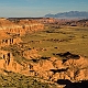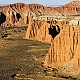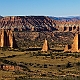 ![]() ![]() 2005Der Trip durchs Cathedral Valley war einer der absoluten Höhepunkte der 2005er Tour. Nachdem wir im Jahr zuvor aus Zeitgründen darauf verzichtet hatten, wurde er diesmal fest eingeplant, inklusive einer Übernachtung auf dem Cathedral Valley Campground.Zunächst erkundigten wir uns im Visitor Center nach den aktuellen Straßenzuständen und dem Zustand der River Ford, aber es gab keinerlei Probleme, so daß wir uns mit reichlich Infomaterial versorgt auf den Weg machen konnten. Von den Rangern bekommt man sogar eine kleine Zeichnung mit Hinweisen, wie die Furt zu überqueren ist, und damit ist es auch überhaupt kein Problem, denn der Fluß ist meist nur etwa 25cm tief. Hat man den Fluß erfolgreich überquert, gelangt man zunächst in das Gebiet der Bentonite Hills, eine regelrechte Einöde aus Lehmhügeln, durch die die "Straße" hindurchführt. Anschließend verläuft die Straße meist in einem trockenen Flußbett bzw. quert dieses immer wieder. Langsam kommt man immer höher hinauf, und erreicht nach etwa 14 Meilen den ersten Overlook am Ende einer kurzen Stichstraße auf der linken Seite. Dies ist der Lower South Desert Overlook, der einen sehr imposanten Ausblick auf ein ziemliches Durcheinander von zerklüfteten Felsen und Canyons bietet :-) Langsam senkte sich die Abenddämmerung herab, und so machten wir uns auf den Weg zum Upper Cathedral Valley Overlook, um dort den Sonnenuntergang zu verfolgen. Der Overlook befindet sich kurz vor dem Campingplatz auf der rechten Seite der Straße. Vom Parkplatz läuft man noch ein kurzes Stückchen bis zum Rand, wo man den perfekten Blick auf das Tal mit seinen beeindruckenden Monolithen hat. Im Licht der untergehenden Sonne strahlen die Felsen rötlich-golden, und es lassen sich von mehreren Standpunkten entlang des Randes wunderbare Fotos schießen. Ein perfekter Ausklang des Tages in dieser absoluten Einsamkeit! Danach ist es nur noch ein kurzes Stück bis zum Campingplatz. Hier gibt es fünf Stellplätze und ein Toilettenhäuschen, alles sehr gepflegt, dafür daß der Platz so weit abseits der Zivilisation liegt. Und wir hatten das Glück, völlig alleine hier oben zu sein, die ganzen zwei Stunden Fahrt von der Hauptstraße her waren wir niemandem begegnet. Das Wetter war zwar hervorragend, aber es blies ein heftiger Wind, und so erlebten wir eine ziemlich laute, ungemütliche Nacht, da der Wind unablässig am Zelt rüttelte und es hier oben auf um die 2000 Metern Höhe auch noch ziemlich kalt wurde. Aber ein tolles Erlebnis war es trotzdem! Am nächsten Tag geht es dann hinab ins Upper Cathedral Valley. Vom Campingplatz aus schlängelt sich die Straße hinunter, und man kommt direkt bei den Walls Of Jericho vorbei, die man schon von oben gesehen hat. Bei der Weiterfahrt zum Lower Cathedral Valley bieten sich immer wieder neue Ausblicke auf die riesigen Monolithen entlang der Strecke. Schließlich kommt man dann zu einem weiteren Höhepunkt, den Temples Of The Sun & Moon, zwei Monolithen, die man auf einer kurzen Stichstraße zum westlichen Rand des Tales erreicht. Man kann direkt an den beiden Temples vorbeifahren und bekommt erst dadurch einen Eindruck ihrer unglaublichen Größe. Besonders im morgendlichen Licht lassen sich die Temples von mehreren Punkten aus wunderbar ablichten. Der weitere Verlauf der Strecke über die Cainville Wash Road ist eher unspektakulär, und bald erreicht man auch wieder den Highway bei Caineville. Für die gesamte Strecke ist etwa mit 4-5 Stunden Fahrzeit zu rechnen, wenn man auch die Aussichtspunkte ansteuert, aber ich würde auf jeden Fall die Übernachtung auf dem Campingplatz einplanen, so hat man an jedem Aussichtspunkt die idealen Lichtverhältnisse. Die Straßenbeschaffenheit war bei unserer Tour relativ gut, einige Abschnitte waren jedoch recht rauh, und man muß des öfteren einen Wash durchqueren, so daß auf jeden Fall ein Auto mit hoher Bodenfreiheit empfehlenswert ist. Allradantrieb sollte nicht unbedingt notwendig sein. Auf jeden Fall sollte man vorher aber bei einem Park Ranger Informationen zur Strecke einholen. 2011In diesem Jahr war mal wieder ein Besuch des Cathedral Valley fällig. Ursprünglich war zwar die gleiche Route geplant gewesen, aber der Ranger im Visitor Center riet uns davon ab, die Strecke über die River Ford zu nehmen, und so fuhren wir diesmal von Westen her über den Thousand Lake Mountain ins Cathedral Valley, eine Entscheidung, die wir nicht bereuten! Hier ging es schon langsam los mit der herbstlichen Laubfärbung, und die Ausblicke vom Cathedral Valley Overlook und bei der Abfahrt hinunter ins Tal sind fantastisch. Die Straßenbeschaffenheit bei der Auffahrt auf den Berg war noch recht gut, die Abfahrt gestaltete sich jedoch sehr langsam und holprig, da die Straße recht ausgewaschen war. Am späten Nachmittag ging es dann zum Upper South Desert Overlook, den wir beim ersten Besuch vor 6 Jahren noch verpasst hatten. Hier erwartete uns ein gigantischer Ausblick über die South Desert, eine unglaubliche Weite, die mich an die afrikanische Savanne erinnerte (auch wenn ich die noch nicht persönlich gesehen habe :-) Auch der Upper Cathedral Valley Overlook war kurz vor Sonnenuntergang wieder wunderschön. Anschließend ging es zum Campingplatz, wo wir den Tag am Lagerfeuer ausklingen ließen.Am nächsten Morgen stand die nächste Herausforderung auf dem Plan, nämlich rechtzeitig zum Sonnenaufgang die 15 Meilen bis zu den Temples im Lower Cathedral Valley zu schaffen. Das war insofern nicht ganz einfach, als wir dabei ganze 28 Washes bzw. Stellen, an denen die Straße weggespült worden war, zu durchqueren hatten. Hier hatten in der letzten Woche offensichtlich heftige Unwetter gewütet, doch vor uns waren bereits ein paar Autos hier entlanggefahren, so daß wir einigermaßen vorwärtskamen, aber trotzdem weit über 1 Stunde bis zu den Temples benötigten. Wir hatten jedoch noch etwas Zeit bis zum Sonnenaufgang und konnten so einen schönen Standpunkt 