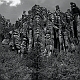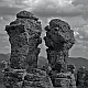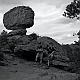 Das Chiricahua NM ist - wohl auch aufgrund der abgeschiedenen Lage im äußersten Südosten Arizonas - relativ unbekannt und vergleichsweise wenig besucht, aber ein Abstecher dorthin lohnt sich auf jeden Fall. Bis kurz vor unserem Urlaub 2005 hatte ich auch noch nichts davon gehört, aber dann entdeckte ich den Park auf einer Karte und suchte mir einige Informationen dazu im Internet. Als ich dann einige Bilder gesehen hatte, war schnell klar, daß wir diesen Park noch irgendwie in unsere Route einbauen mußten! Die Gegend erinnert ein wenig an den Bryce Canyon, denn auch hier stehen unzählige Felstürmchen umher, allerdings bestehen sie hier aus einem anderen Gestein, nämlich vulkanischem Rhyolith. Dementsprechend haben die Felsen auch eine graue Farbe und bekommen durch Flechten, die darauf wachsen, noch einen gelblich-grünlichen "Anstrich". Das Chiricahua NM liegt auf einem bewaldeten Gebirgszug von bis zu 2200 Metern Höhe und umfaßt mehrere Täler, die über und über mit Felsnadeln besetzt sind. Wenn man den Scenic Drive entlang fährt, kommt man schon an einigen schönen Formationen vorbei, wie den Organ Pipes und dem China Boy, aber man bekommt erst einen richtigen Eindruck von dem Gelände, wenn man sich auf einem der Wanderwege direkt hinein in das Felsenlabyrinth begibt. Am Parkplatz am Ende des Scenic Drive beginnen geniale Wanderwege, und für unseren Besuch hatten wir uns eine 13km lange Wanderung zusammengestellt, die die schönsten Strecken verband und auch den spektakulärsten Teil, das Heart Of Rocks, mit einschloß. Zunächst ging es ein Stück hinab auf dem Echo Canyon Trail, dann auf dem Talboden des Rhyolite Canyon in einem trockenen Flußbett entlang, und danach den Sarah Deming Canyon wieder hinauf. Oben auf einer kleinen Hochebene befindet sich der beeindruckendste Teil, das Heart Of Rocks. Hier führt ein kurzer Rundweg zwischen bizarren Felsgebilden hindurch, und man kommt an einigen lustigen Figuren vorbei, wie z.B. Punch And Judy ("Kasperltheater"), die wirklich wie zwei Handpuppen aussehen, dem Kamel, der Ente oder Thor´s Hammer (wieder eine Ähnlichkeit zum Bryce!). Außerdem gibt es einige Balanced Rocks, und am "Big Balanced Rock" liest man staunend auf einer Tafel, daß der Felsbrocken, der hier auf einem winzigen Sockel steht, 1000 Tonnen wiegt und einen Durchmesser von über 6 Metern hat! Außerdem hat man immer wieder sensationelle Ausblicke auf die umliegenden Hügel, von denen einer besonders interessant ist, denn er sieht aus wie der Kopf eines liegenden Indianers. Nach der Kletterpartie im Heart Of Rocks ging es dann auf der Hochebene ein Stück Richtung Osten, dann den Mushroom Rock Trail wieder hinab in den Rhyolite Canyon, wobei man schöne Ausblicke auf die Felsnadeln am Canyonrand hat, und schließlich den Ed Riggs Trail steil hinauf bis zum Parkplatz. Alles in allem keine leichte Wanderung, bei der man schon einige Höhenmeter überwinden muß, aber definitiv eine der schönsten, die wir auf unseren Touren bisher gemacht haben. Sie steht einer Wanderung durch den Bryce Canyon kaum nach! |