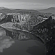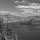 Lange Zeit hatten wir den Crater Lake bei den Urlaubsplanungen außen vor gelassen, doch bei der 2006er Tour bot es sich an, einen "kleinen" Abstecher von der Küste ins Landesinnere zu machen und dem See endlich einen Besuch abzustatten. Wie sich herausstellte, war das ein absolut lohnenswerter Umweg! Der See ist WIRKLICH so blau, wie er auf den Bildern erscheint. Wenn man so wie wir perfektes Wetter hat, ist die Tour rund um den Krater ein atemberaubendes Erlebnis! Wir hatten in der Nacht zuvor am Diamond Lake gecampt und kamen frühmorgens von Norden an den See. Schon als wir am ersten Aussichtspunkt den See mit den kleinen weißen Wölkchen darüber spiegelglatt daliegen sahen, wußten wir, daß wir eine sensationelle Tour vor uns hatten. Wir fuhren die über 50km lange Runde um den Krater im Uhrzeigersinn, um die Sonne an den Aussichtpunkten immer im Rücken zu haben, und ein Overlook war schöner als der andere. Nachdem sich der dünne Nebelschleier über dem Wasser gelichtet hatte, erstrahlte der See in tiefstem Blau, die Wölkchen spiegelten sich darin, einfach perfekt! Wir hatten uns immer gefragt, ob das Blau wirklich so intensiv ist wie auf den Bildern, die wir vorab gesehen hatten, und das können wir jetzt bestätigen. Durch die immense Tiefe von beinahe 600 Metern schluckt der See einen Großteil des einfallenden Lichtes, wodurch das dunkle Blau entsteht. Schöne Fotomotive ergeben sich in Hülle und Fülle von nahezu jedem Aussichtspunkt, besonders schön sind jedoch die zwei "Inseln" im See. Zum einen das winzige Phantom Ship, eigentlich nur die Verlängerung eines Felsrückens, der in den See ragt, zum anderen Wizard Island, das interessanterweise ein Vulkankegel innerhalb des Kraters ist. Der See selbst ist durch Regen- und Schmelzwasserzuflüsse entstanden und hat keinen Abfluß, d.h. die Verdunstung ist inzwischen genauso hoch wie die Zuflüsse, wodurch er seinen konstanten Pegel hält. Empfehlenswert ist auf jeden Fall die Kurzwanderung hinauf zum Aussichtpunkt auf dem Watchman in 2442 Metern Höhe, etwa 550 Meter über der Wasseroberfläche. Von hier aus überblickt man den kompletten See, und besonders Wizard Island sieht geradezu unwirklich aus, wie es so aus dem türkisfarbenen Wasser ragt. Auf der Bergspitze befindet sich auch ein alter Feuerwachturm, der sich bei unserem Besuch gerade wieder in Betrieb befand, denn von hier aus ließ sich die Überwachung der Waldbrände, die südwestlich des Sees wüteten, am besten koordinieren. Wenn man eine Stunde übrig hat, sollte man sich auch die Fahrt zu den Pinnacles nicht entgehen lassen. Dieses interessante Gebiet befindet sich am Ende einer 15km langen Stichstraße im Südosten des Parks und lohnt die Anfahrt auf jeden Fall. Ganz ähnlich wie in einem Bryce Canyon im Miniaturformat findet man hier eine Menge Türmchen entlang einer Canyonkante, wobei die Entstehungsgeschichte hier eine völlig andere ist. Während im Bryce massive Fels- und Lehmtürme von Wind und Wasser freigelegt wurden, hat man es hier im Vulkangebiet mit ehemaligen Fumarolen zu tun, also Austrittsschächten heißer Gase, an deren Wänden sich Mineralien ablagerten, die weit härter als die umgebenden Gesteinsschichten waren, und so blieben im Laufe der Zeit durch Erosion diese bizarren hohlen Türmchen übrig. |