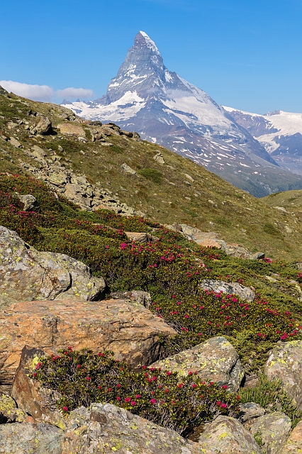 Matterhorn und Alpenrosen