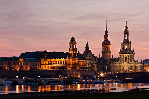 Abendlicher Blick von der Carolabrücke in Dresden