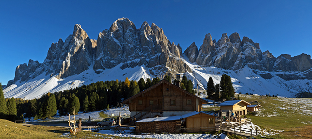Geisleralm und Geislerspitzen über dem Villnößtal