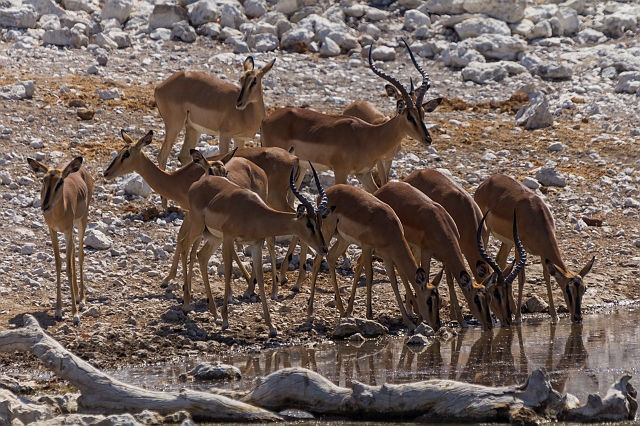 Schwarznasenimpalas am Wasserloch Olifantsbad