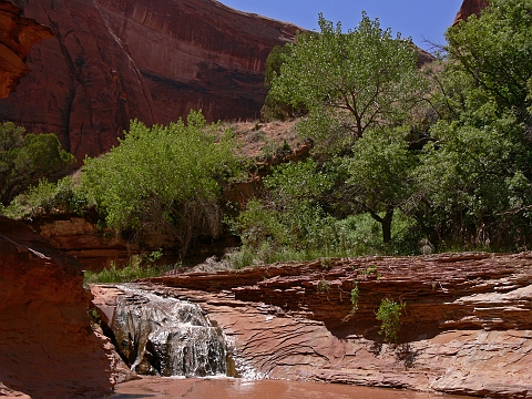 Einer der vielen kleinen Wasserfälle im Coyote Gulch