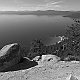 ![]() ![]() Für diesen Trail alleine hat es sich schon gelohnt, das Fahrrad mitzunehmen - ein spektakulärer Singletrail hoch oben über dem Lake Tahoe mit fantastischer Aussicht auf den See! Das ist allerdings nur eine Hälfte des Trails, denn los geht es weiter unten auf etwa 2100m Höhe im Spooner Lake State Park. Ich ließ mich hier mit meinem Mountain Bike absetzen, wer kein eigenes Fahrrad dabei hat, kann sich hier aber auch eines leihen und am Ende des Trails den Shuttlebus zurück zum Spooner Lake nehmen. Das erste Teilstück des Trails führt auf guter Forest Road durch den North Canyon aufwärts bis zum malerischen Marlette Lake. Teilweise sind etwas steilere Abschnitte dabei, aber trotz der Höhe kam ich mit einigen Pausen eigentlich ganz gut vorwärts. Kurz vor dem See zweigt die Hobart Road in Richtung Tahoe Rim Trail ab - ihr folgte ich noch ein Stückchen bis zum Marlette Lake Overlook, was man sich aber sparen kann. Am Aussichtspunkt sollte man eigentlich sowohl den Marlette Lake als auch ein Stück des Lake Tahoe sehen können, wegen der Bäume ist jedoch nicht viel zu sehen - dafür lohnt sich die zusätzliche Anstrengung nicht. Zurück am wunderschön gelegenen Marlette Lake kann man eine kleine Pause am Ufer einlegen, hier gibt es einen Historical Marker auf einer kleinen Halbinsel, wo einst eine Hütte stand, von der heute nur noch der Kamin übrig geblieben ist. Anschließend geht es am westlichen Ufer weiter um den See herum bis zu einem kleinen Damm. Hier bleibt einem nichts anderes übrig, als ein paar Meter durch den See zu fahren, es sei denn, man möchte sein Rad über einige Felsen tragen. Und dann geht der Spaß erst richtig los - der eigentliche Flume Trail wartet! Vom Damm aus geht es auf Singletrail weiter, zuerst ein paar enge Serpentinen bergab, und dann hinaus auf den Flume Trail, der von hier aus 8km an der Bergflanke entlang führt, etwa 450m über dem Lake Tahoe. Der Trail verläuft nahezu eben, schlängelt sich zwischen Felsen hindurch und erlaubt immer wieder spektakuläre Ausblicke über den tiefblauen See. Hier könnte man eigentlich ordentlich Gas geben, aber dann würde man ja die grandiose Aussicht verpassen, ich jedenfalls konnte nicht anders, als alle paar Meter anzuhalten, den Blick über den See schweifen zu lassen und ein paar Fotos zu machen. Besonders toll ist der Blick hinunter auf den Sand Harbor, eine kleine Landzunge mit Sandstrand, die in das türkisfarbe Wasser hinausragt. Insgesamt ist der Trail nicht besonders anspruchsvoll, es gibt zwar eine etwas heikle Stelle, an der man einen Felssturz überqueren und das Fahrrad an einer sehr schmalen Stelle ein Stückchen über wackelige Felsbrocken tragen muß, doch der Rest ist trotz der teils exponierten Lage recht entspannt, da der Weg relativ breit ist. Viel zu schnell ist dieser Singletrail-Abschnitt jedoch schon wieder vorbei, und es geht auf breiten Forstwegen ziemlich rasant den Tunnel Creek Canyon hinab bis zum Treffpunkt am Trailhead, wo ich nach insgesamt etwa 3 1/2h ankam. |
