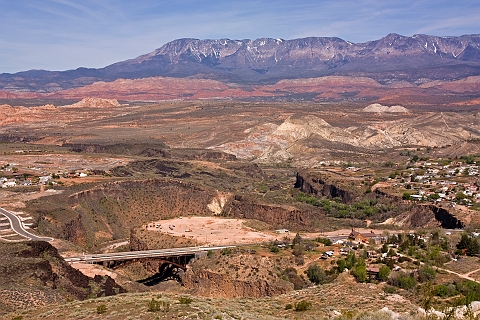 Aussicht über die Virign River bridge bis zu den Red Cliffs