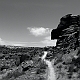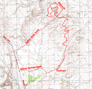 ![]() ![]() ![]() Bei meinem Besuch 2004 kam ich jedoch erst um die Mittagszeit am Trailhead (N 38°41'53.44" W 109°39'48.52") an, und es war inzwischen derart heiß geworden (um die 40°C), daß ich es nur etwa 2 1/2 Stunden auf dem Trail aushielt, was aber ausreichte, um einen guten Eindruck zu bekommen. Der Trail ist auf jeden Fall zu empfehlen, allerdings eher für kühlere Tage... Ich startete am Trailhead an der Willow Springs Road, die von Moab aus gesehen etwa 1,8 Meilen nach der Abzweigung zum Canyonlands N.P. nach Osten führt (N 38°41'48.13" W 109°41'55.46"). Nachdem man ein Tor passiert hat, gelangt man nach etwa 2 Meilen zum Parkplatz in der Nähe eines Pumpen-Gebäudes, von wo aus man der Dirt Road noch ein kurzes Stück folgen muß, bevor es dann links auf den gut ausgeschilderten Singletrail geht. Abgesehen von einigen Slickrock-Bereichen, auf denen der Trail durch aufgemalte Zeichen markiert ist, fährt man nur auf Singletrails durch sehr felsiges, hügeliges Gelände, wobei man Schatten nur bei den gelegentlich umherliegenden riesigen Felsblöcken findet, da Vegetation nur sehr spärlich bis gar nicht vorhanden ist. Meine Tour führte mich bis kurz vor die Dalton Wells Road, aber da ich wegen der Hitze sowieso wieder zurückfahren wollte, drehte ich vor der letzten Abfahrt wieder um, um nicht auf dem Rückweg sofort wieder hinauf fahren zu müssen. Nach etwa 2 1/2 Stunden kam ich dann ziemlich geplättet wieder am Auto an, bei kühleren Temperaturen ist das Ganze jedoch sicher einfacher und mit mehr Spaß verbunden, und es gibt viele Kombinationsmöglichkeiten der einzelnen Abschnitte, so daß hier für jeden etwas dabei ist. Update 2009:Diesmal hatte ich mir vorgenommen, eine größere Runde zu fahren, da es ja Anfang April noch deutlich kühler und dementsprechend angenehmer zu biken sein würde. Allerdings war es dieses Jahr deutlich kälter als normal, wozu auch der stürmische Wind beitrug, der fast jeden Tag wehte, doch ich ließ mich nicht abschrecken und schwang mich aufs Bike. In solchem Gelände wirkt sich der Wind aber auch nicht so stark aus, denn man kommt ja sowieso nicht schnell voran und hat dadurch auch keine Probleme mit Gegenwind. Höchstens bei Sandsturm könnte man Probleme bekommen, aber das hielt sich in Grenzen.So schaffte ich diesmal also eine größere Strecke, ähnlich wie es bei Utah Mountain Biking beschrieben ist (der blaue Trail). Nur daß ich wegen des aufziehenden Unwetters lieber nicht wieder auf dem Trail über die Mesa zurückfuhr, sondern die Dalton Wells Road bis zur #191, dann das kurze Stück auf der #191 bis zur Willow Springs Road und diese zurück zum Trailhead. Und kaum war ich zurück, begann es zu schneien! Nichtsdestotrotz ein toller Trail, den ich nur empfehlen kann. Hier gibt es alles, Singletrail, felsiges Gelände, ein riesiges Slickrock-Gebiet im Teil nördlich der Dalton Wells Road, aber auch einige Abschnitte durch tiefen Sand. Das Ganze ist gut ausgeschildert, wobei ein GPS aber trotzdem sehr nützlich ist, denn es gibt unzählige Abkürzungen und Verbindungsstrecken und es ist nicht immer klar, welche man am Besten nimmt, außerdem fällt so die Orientierung auf dem Slickrock-Plateau leichter. GPS-Daten gibt es unter dem bereits genannten Link. |