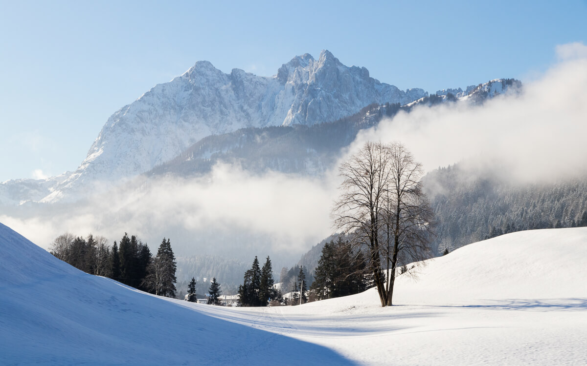 Winterpanorama mit Wildem und Zahmem Kaiser