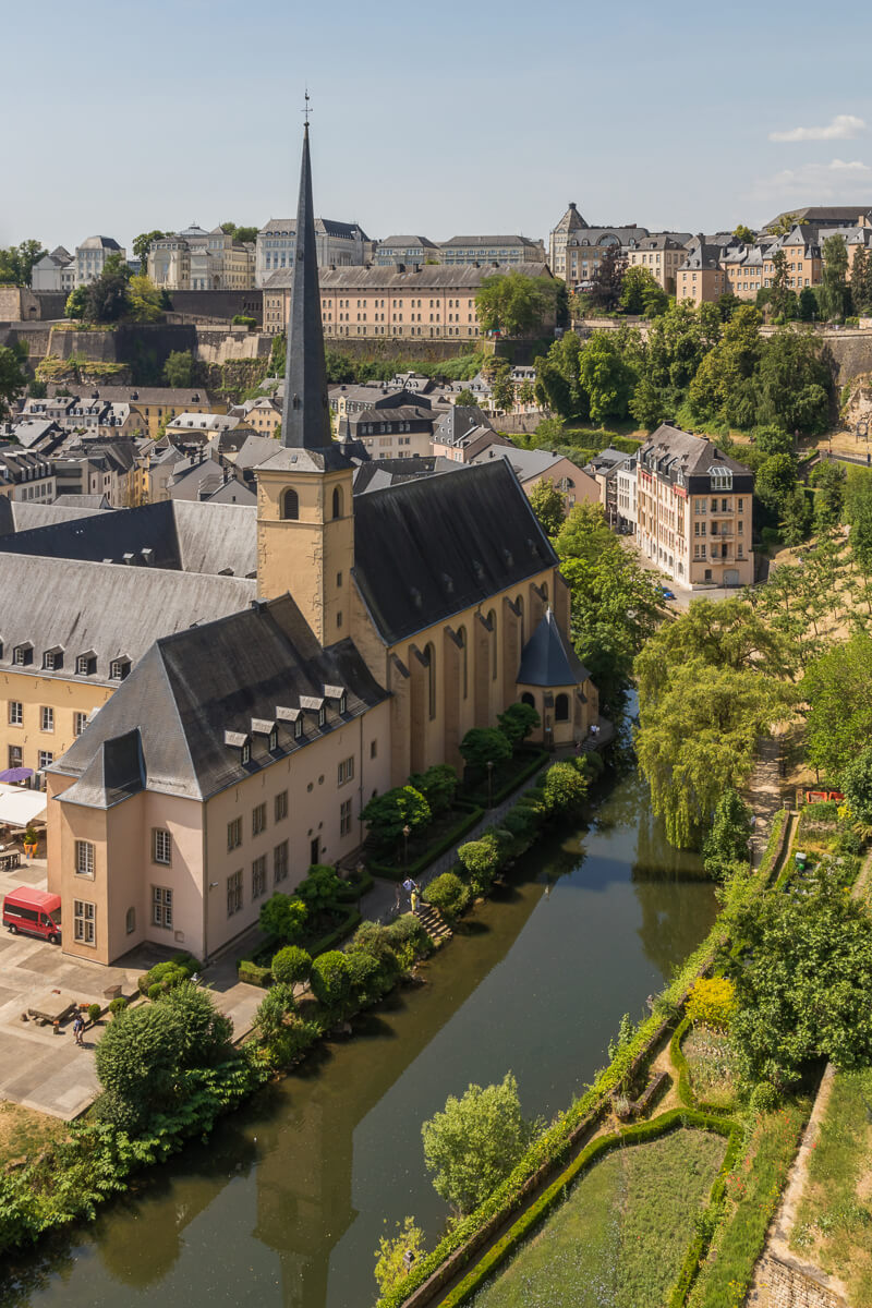 Blick von den Bock-Kasematten über die Abtei Neumünster