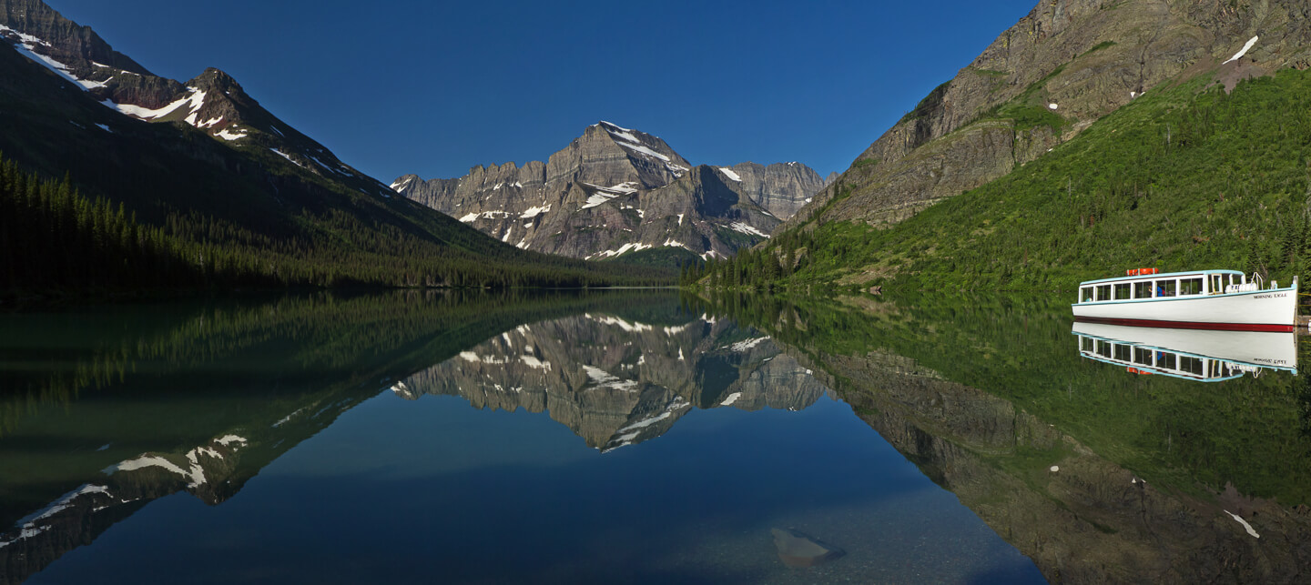 Two Medicine Lake und Sinopah Mountain bei Sonnenaufgang