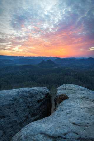 So kann es gehen - eigentlich wollten wir über Ostern in die Provence fahren, wo das Wetter ja tendenziell um diese Jahreszeit schöner und wärmer sein sollte. Aber da diesmal eher das Gegenteil der Fall sein sollte, entschieden wir uns kurzfristig für ein anderes Ziel auf unserer Wunschliste - die Sächsische Schweiz. Eine gute Entscheidung! Zwar passierte Melanie gleich am ersten Tag ein Missgeschick und sie verstauchte sich den Fuß, so dass Wanderungen für sie leider ausfielen, aber nach ein paar Tagen konnte sie zumindest wieder Fahrradfahren, so dass wir zumindest noch ein paar schöne Fahrradtouren machen konnten - Wanderungen musste ich aber alleine unternehmen. Hier war ich oft schon zum Sonnenaufgang unterwegs - der Campingplatz im Kirnitzschtal war perfekt gelegen, um mit dem Fahrrad und zu Fuß schnell auch zu entlegeneren Orten zu gelangen. Am letzten Tag hatte ich dann das Glück, den Sonnenaufgang auf dem Papststein und danach die Ausblicke vom Pfaffenstein mit Nebelschwaden im Tal zu genießen. Besonders schön war, dass wir während unseres Aufenthaltes sozusagen einen zweiten Frühling erleben konnten, denn bei uns zu Hause war die Natur schon 1-2 Wochen weiter und die Wälder waren bereits grün und die Obstbäume großteils verblüht, während hier alles gerade erblühte oder in voller Blüte stand und wir während der einen Woche miterleben konnten, wie die Wälder immer grüner wurden und die frischen Blätter in der Sonne in grellstem Grün erstrahlten. Trotz Missgeschick und dem ein oder anderen Regentag zwischendurch eine wirklich schöne Tour! Wir kommen wieder, vielleicht im Herbst - jetzt müssen wir ja schließlich die Wanderungen nochmal zusammen machen!
