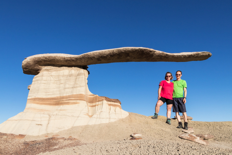 Aber dann war es auch vorerst wieder vorbei mit dem schlechten Wetter, an den folgenden Tagen konnten wir bei strahlendem Sonnenschein vormittags die grandiosen Ruinen der Pueblos im Chaco Canyon besuchen und an den Nachmittagen die Badlands erkunden. Der Campingplatz im Chaco N.P. war hierfür als Ausgangspunkt bestens geeignet, so dass wir