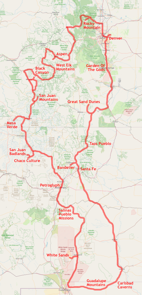 sowie natürlich die Corona-Pandemie, bis wir endlich wieder amerikanischen Boden unter den Füßen hatten... Diesmal zog es uns wieder nach Colorado in die herbstlichen Rocky Mountains und in die weiten Wüstenlandschaften New Mexicos. Von der Route her war es eine ähnliche Tour wie schon im Herbst 2009,