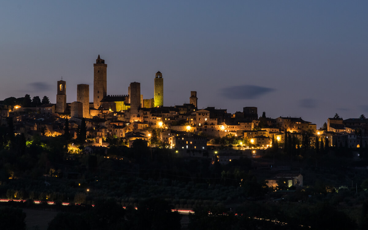 Nächtlicher Blick über San Gimignano
