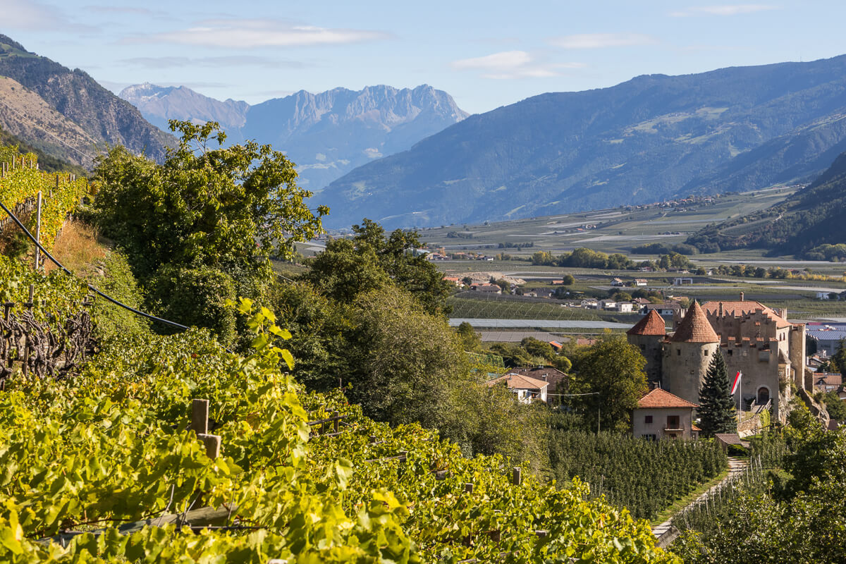 Blick über Burg Kastellbell und den Vinschgau