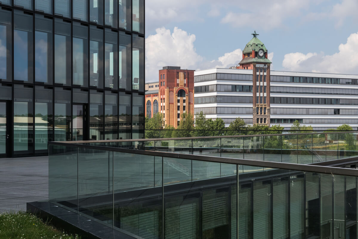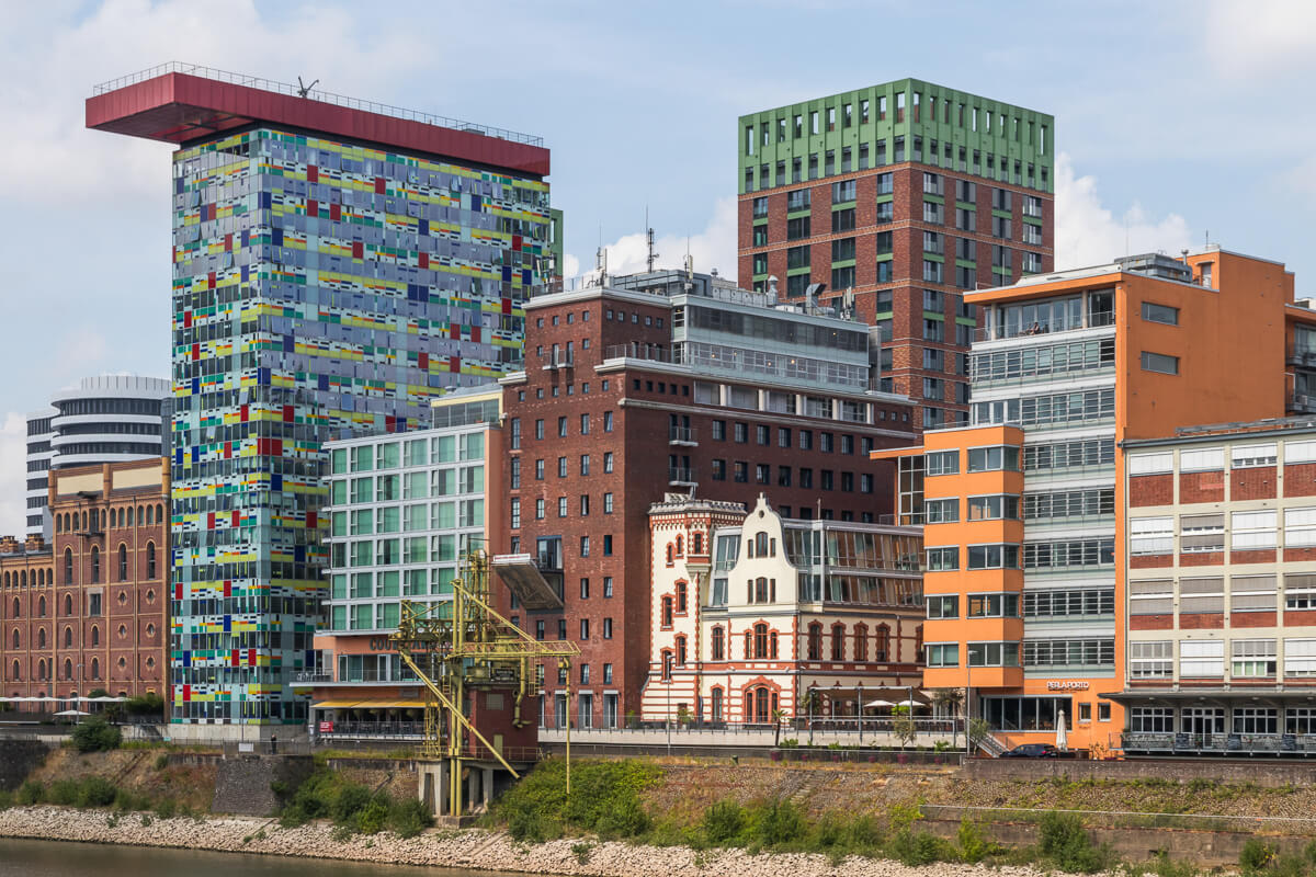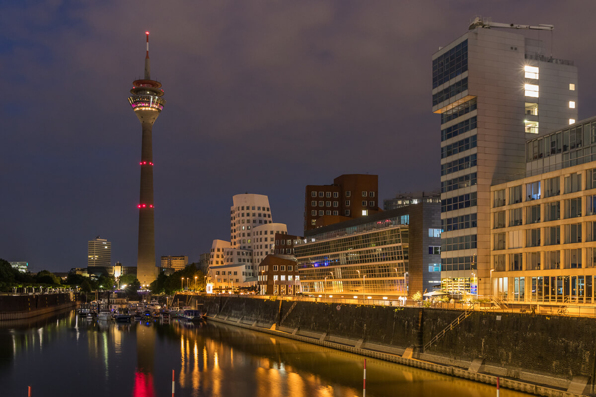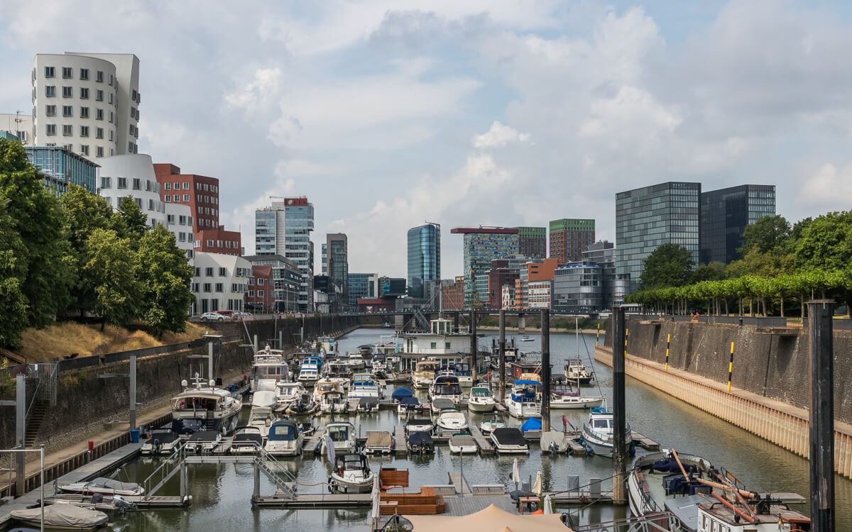 Blick über die Marina zum Düsseldorfer Medienhafen